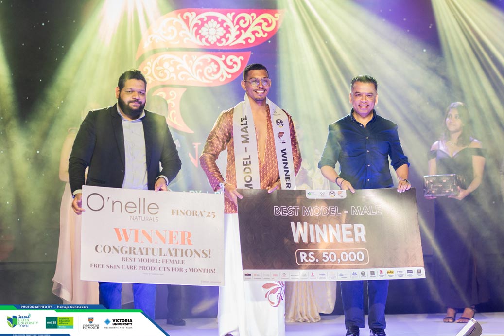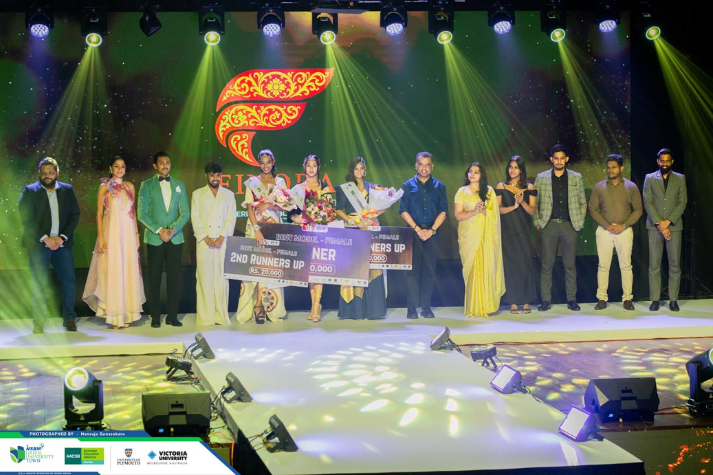 The competition was expertly judged by an esteemed panel featuring Ms. Thilini De Silva, Dean – Faculty of Business, Mr. Kosh Hewage – Renowned Fashion Designer/Choreographer & NSBM Alumnus, Main Choreographer of Finora 2025, Miss Danielle Kerkoven, Miss Harini Silva, Miss Julia Sonali, Mr. Piumal Sithum, and Miss Samali Senevirathne.