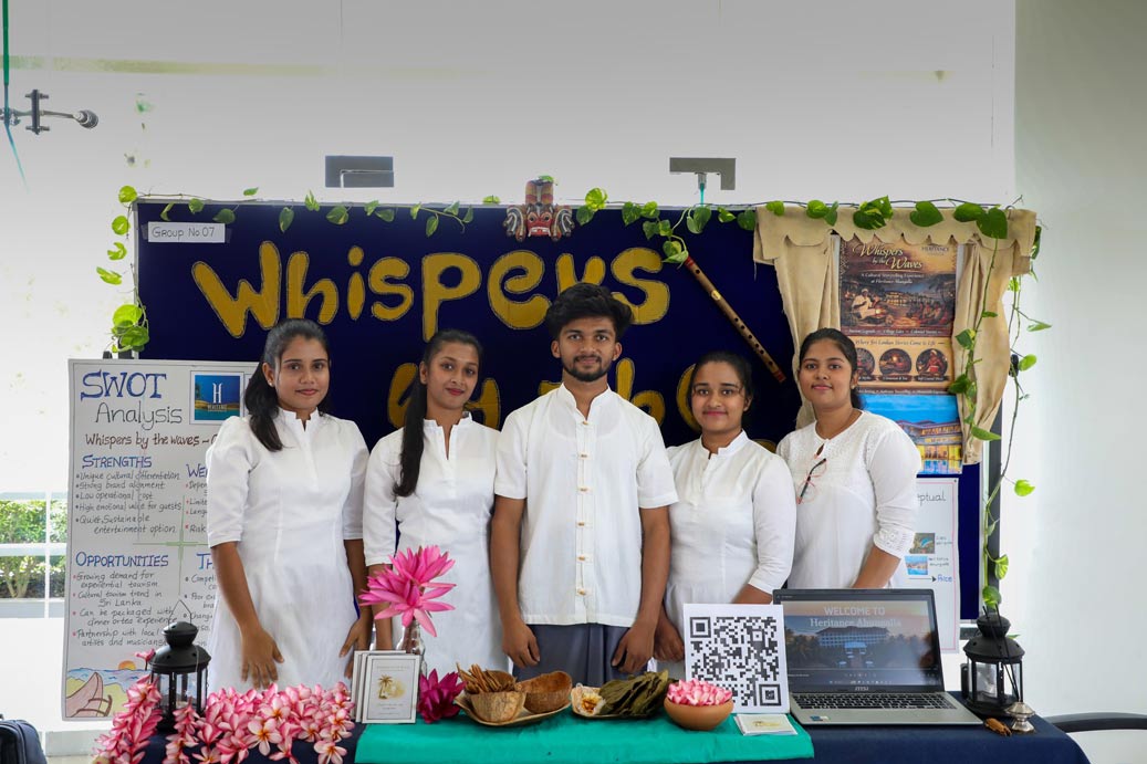 The event witnessed the honoured presence of the Head of Academic Development and Quality Assurance, Prof. Baratha Dodankotuwa, the Dean of the Faculty of Business, Dr. Thilini De Silva, and the Deputy Dean of the Faculty of Business, Mr. Venura Colombage. The Expo also saw the attendance of the lecturers of the tourism cohort of the Department of Marketing and Tourism Management: Mr. Lasitha De Silva, Ms. Senelie Gunaratne, Ms. Tharushi Attanayake, Mr. Dushan Leelachandra, Ms. Samadhi Dodantenna, and Ms. Prabodya Munasinghe.